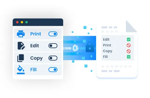 Controle exactamente lo que los usuarios pueden hacer con los documentos protegidos a través de una configuración de permisos granular. El SDK le permite restringir la impresión, la edición, la extracción de contenido, el rellenado de formularios y otras acciones en función de sus requisitos de seguridad. Estos controles permanecen persistentes en diferentes lectores y plataformas de PDF, lo que garantiza una aplicación de seguridad coherente. Los controles de acceso se pueden combinar con la protección con contraseña para una seguridad completa de los documentos.